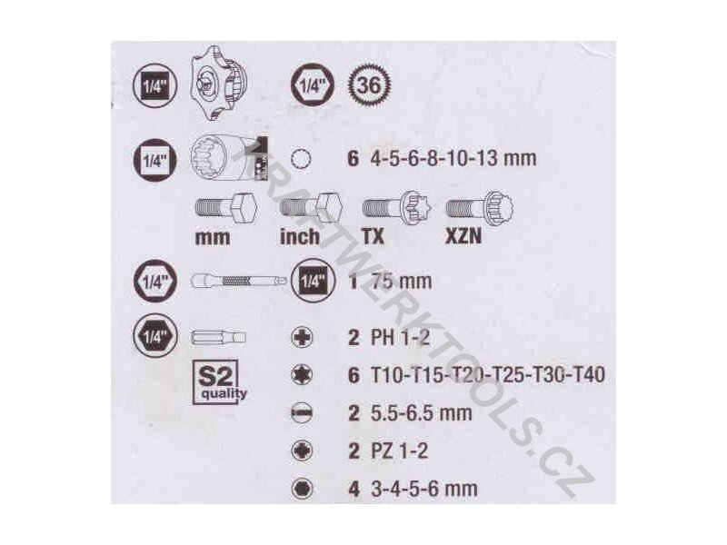 - bity 1/4" PH, PZ, plochý Torx, Inbus