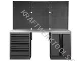 Dílenský stůl 2040x488x2000mm, 2 dveře + 8 zásuvek + záda, deska NEREZ MOBILIO BLACK dílenský nábytek
