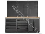 Dílenský stůl 2040x488x2000mm, 2 dveře + 13 zásuvek + záda, deska Multiplex MOBILIO BLACK dílenský nábytek