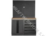 Dílenský stůl 1360x488x2000mm, 2 dveře + 5 zásuvek + záda, deska Multiplex MOBILIO BLACK dílenský nábytek