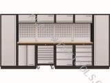 AKCE KW Dílenská stěna 3920x488x2000mm 9 zásuvek, skříňka a vozík, deska Multiplex EXTRA HLUBOKÁ MOBILIO GREY dílenský nábytek