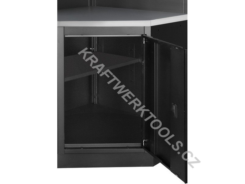 KR-3964-16-BLK | Dílenská skříň spodní rohová, 1 dveře 864/864x458x910mm MOBILIO BLACK dílenský nábytek |