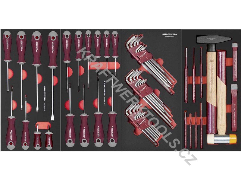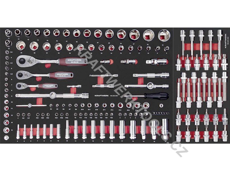 • 272ks nářadí uloženo ve 12 speciálních vložkách z pěny (EVA) 20 x 40 cm / 60 x 40 cm