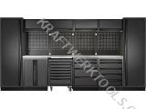 Dílenská stěna 3920x488x2000mm 9 zásuvek, skříňka a vozík, deska NEREZ MOBILIO BLACK dílenský nábytek