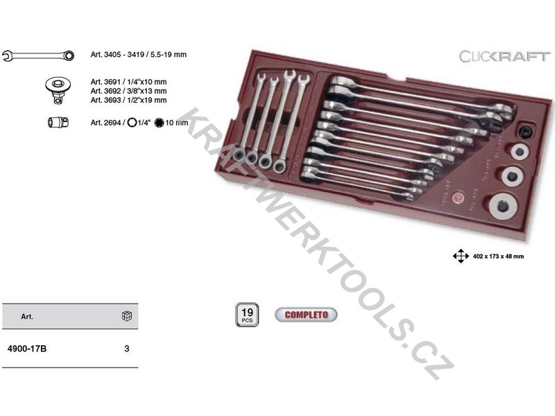 Sada klíčů ráčnových CLICKRAFT COMBINATION 19ks COMPLETO PROFI Line
