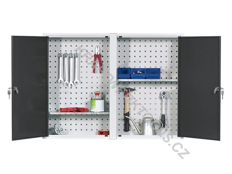 Dílenská skříň horní 2 dveře, 1 police, zamykatelná 680x300x680mm MOBILIO BLACK dílenský nábytek